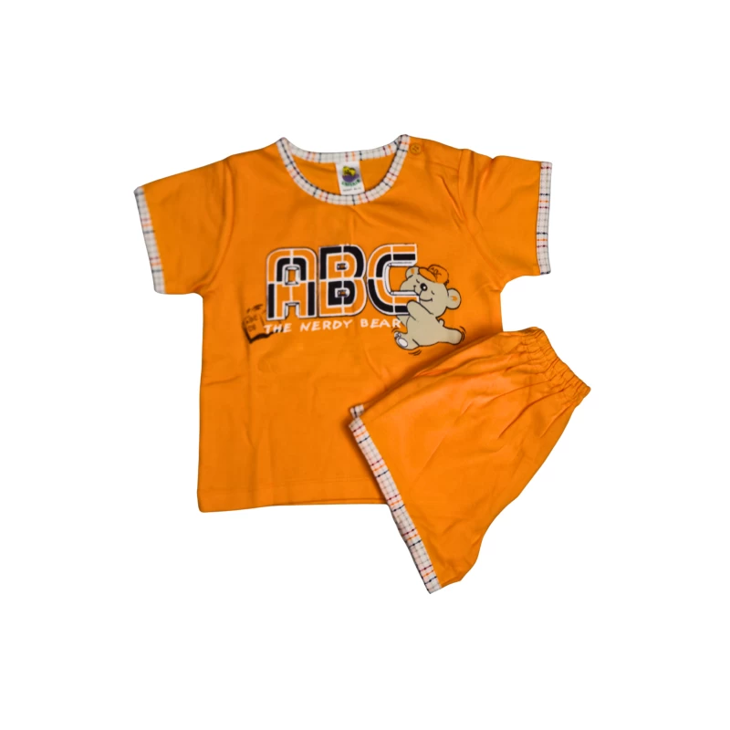 Make learning fun with this adorable blue t-shirt featuring the playful “ABC The Nerdy Bear” design. Made from soft and breathable cotton fabric, this t-shirt keeps your child cool and comfortable all day. The plaid trim on the sleeves and collar adds a charming touch. Perfect for everyday wear, school, or casual outings.