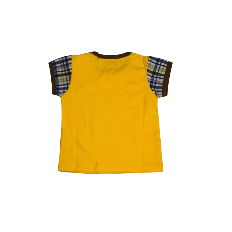 Brighten up your child’s wardrobe with this adorable yellow baby t-shirt featuring a playful cat and fish bone print with the fun message “UNifair… the cat’s…”. Designed with soft, breathable cotton fabric and stylish plaid shoulder panels, it’s perfect for everyday wear. Comfortable, lightweight, and ideal for babies and toddlers.