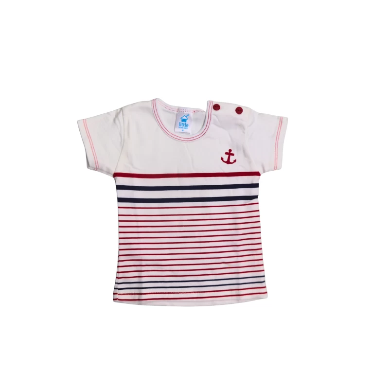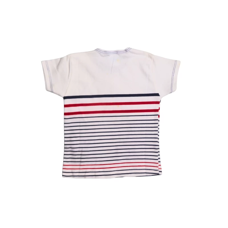 • Classic nautical-inspired two-piece set for active kids. A cream short-sleeve tee with navy and red stripes across the chest, paired with matching striped shorts. Features a small navy anchor emblem for a seaside vibe. Lightweight and breathable, this outfit is perfect for everyday wear, summer outings, and playful adventures. Easy to mix and match with other wardrobe pieces.