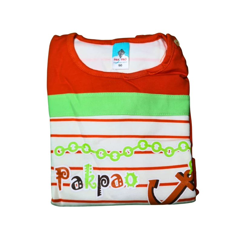 Brighten up your little one’s wardrobe with our Boys Short Sleeve T-Shirt & Shorts Set in vibrant orange and white stripes. Featuring a playful anchor print and “Pakpao” design, this set is perfect for casual outings, playtime, and summer adventures. Made from soft, breathable cotton fabric, it ensures all-day comfort. The elastic waistband shorts provide a secure and flexible fit, making it easy for active play. Ideal for boys aged 0.6-2.5 years.