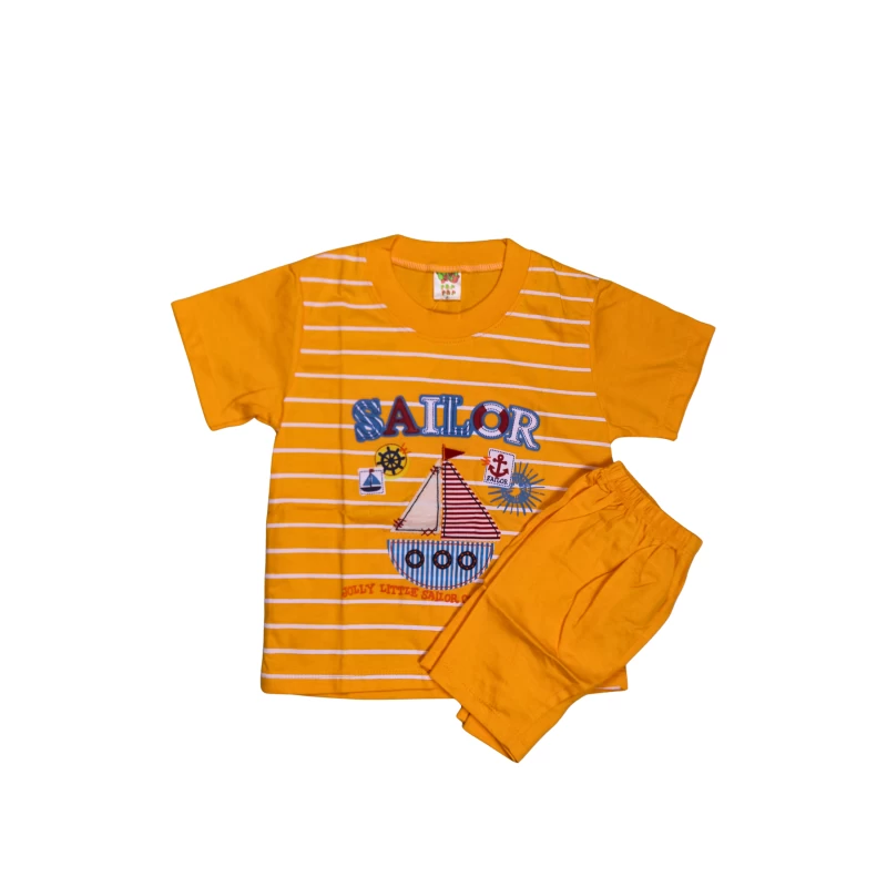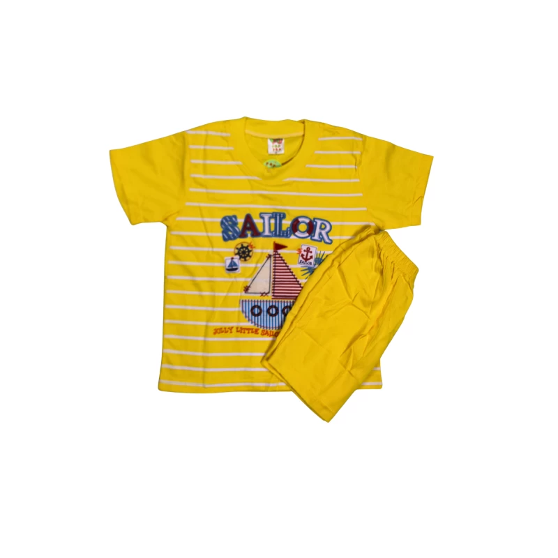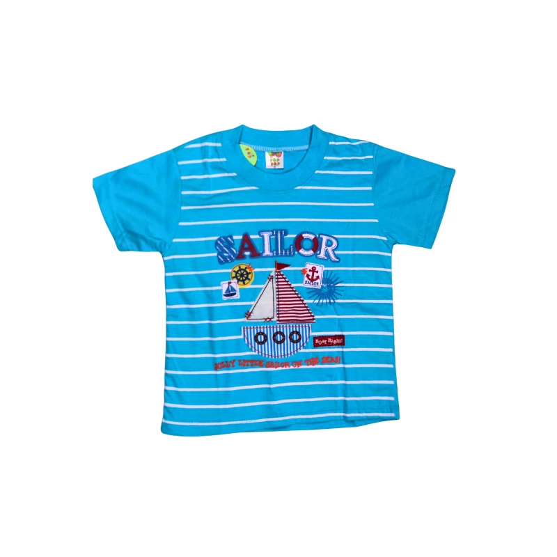 Brighten playtime with this vibrant blue two-piece set: a short-sleeve graphic tee featuring a sailor-themed sailboat and nautical accents, paired with matching shorts. Designed for active kids, the soft, breathable fabric keeps little ones comfortable during sunny days and energetic adventures. The nautical print adds a fun, adventurous vibe that kids love for everyday wear, outings, and back-to-school outfits. The shorts come with an elastic waistband for a secure, easy fit that grows with your child. Durable stitching ensures the set stands up to regular washing.