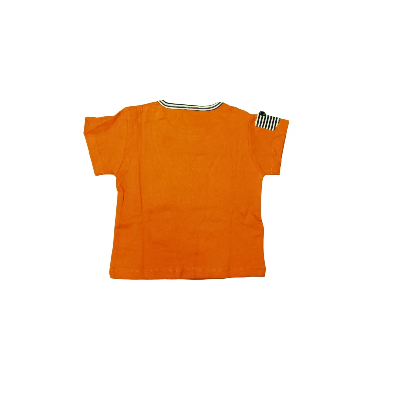 • Bright, comfy two-piece outfit for kids. The short-sleeve orange tee features a playful bear graphic with a colorful “Lovely Tiger” print and a striped collar detail for a fun, sporty look. Paired with matching orange shorts with an elastic waistband for easy dressing and all-day comfort.