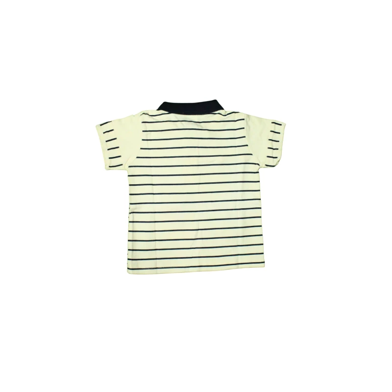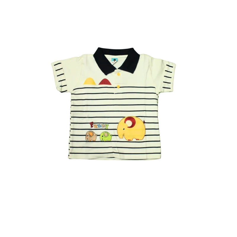 Kids Striped Polo Tee & Shorts Set with Cartoon Elephant/Animal Print