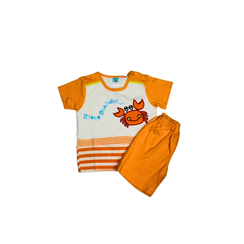 Kids Summer Beach Theme T-Shirt and Shorts Set with Crab Print