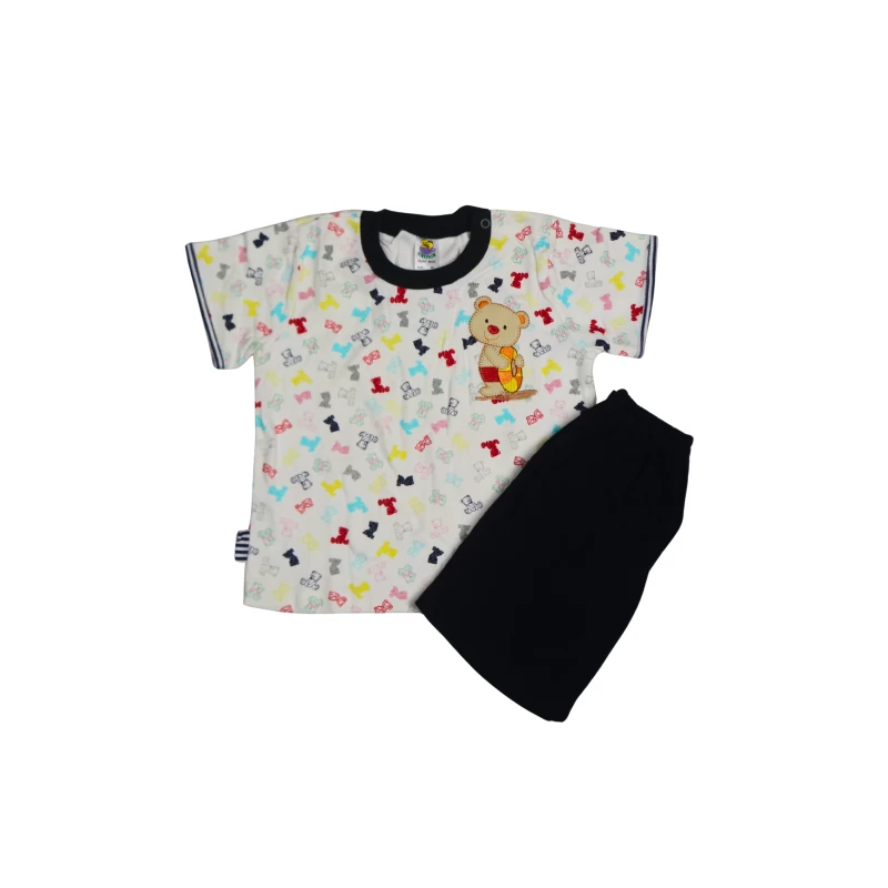 • Brighten playtime with our Multicolor Bear Print Kids T-Shirt & Black Shorts Set. This cheerful two-piece outfit features: