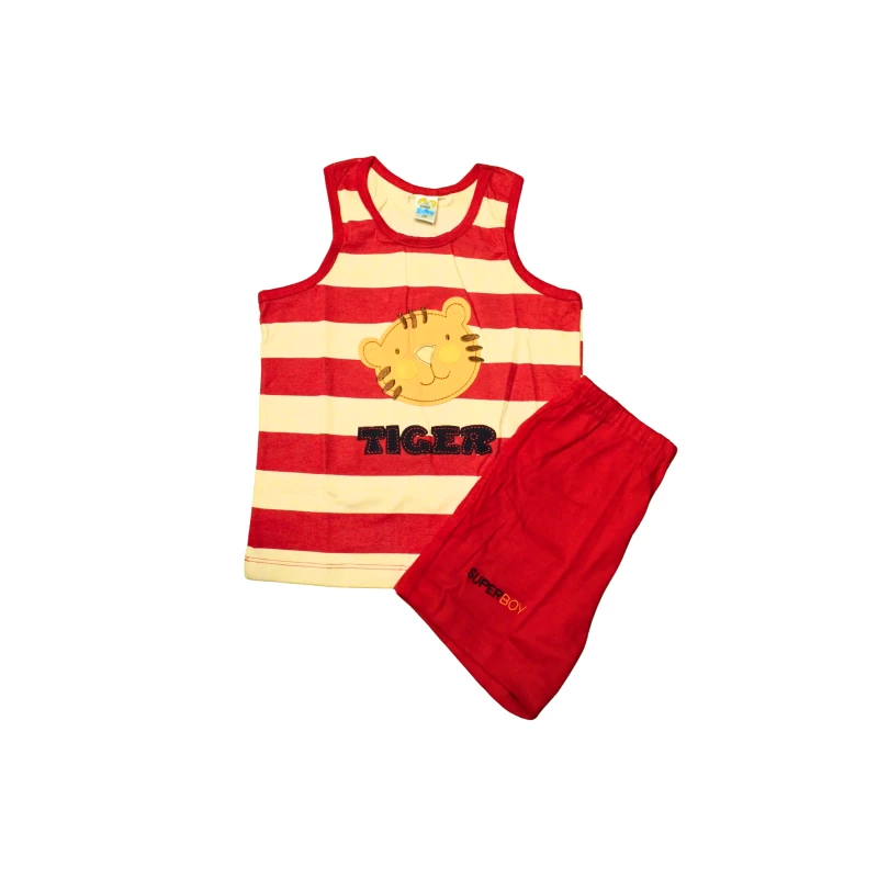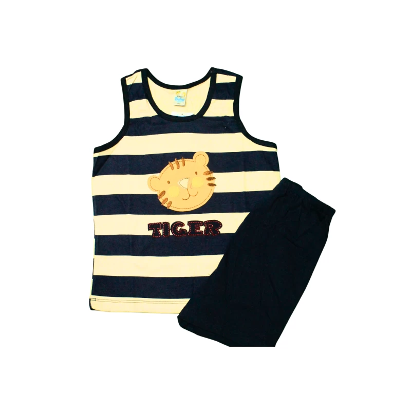 • Dress your little explorer in bright, comfy style with our Navy & Yellow Striped Tiger Graphic Kids Tank Top & Shorts Set. This two-piece outfit features: