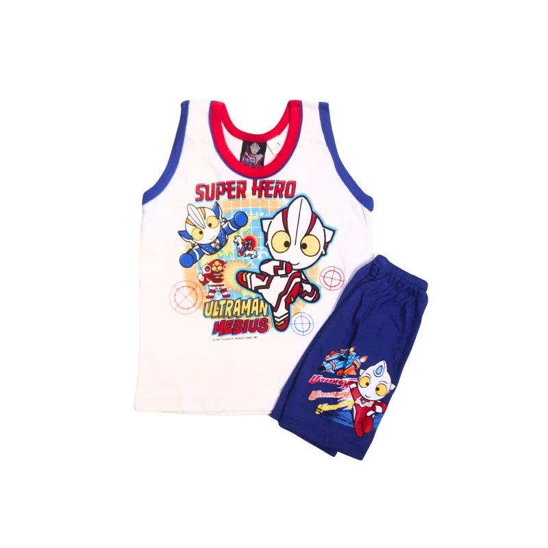 Gear up for an action-packed day with the Ultraman Max Kids Sleeveless Tank Top & Shorts Set. This vibrant two-piece outfit features a bold Ultraman Max graphic on a white sleeveless tank with blue trim and matching blue shorts. Perfect for active kids who love superheroes and bright, playful designs.