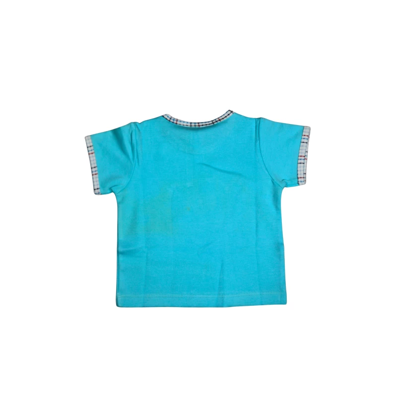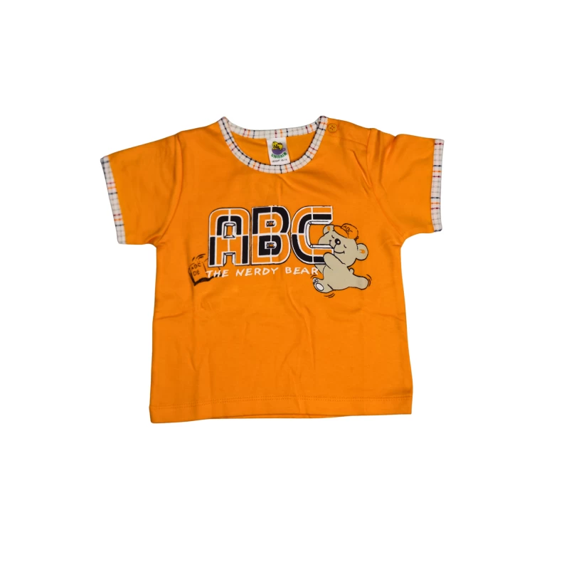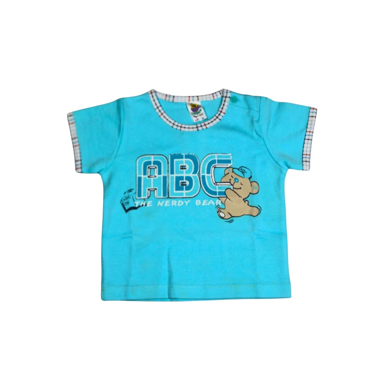 Make learning fun with this adorable blue t-shirt featuring the playful “ABC The Nerdy Bear” design. Made from soft and breathable cotton fabric, this t-shirt keeps your child cool and comfortable all day. The plaid trim on the sleeves and collar adds a charming touch. Perfect for everyday wear, school, or casual outings.