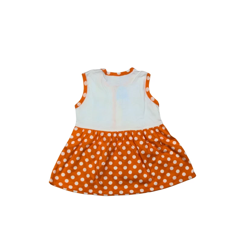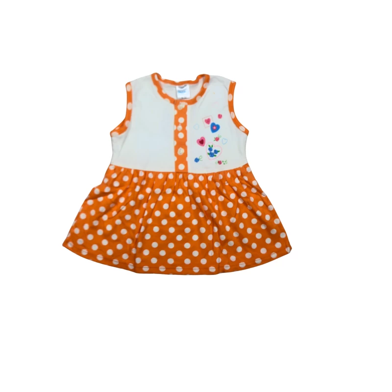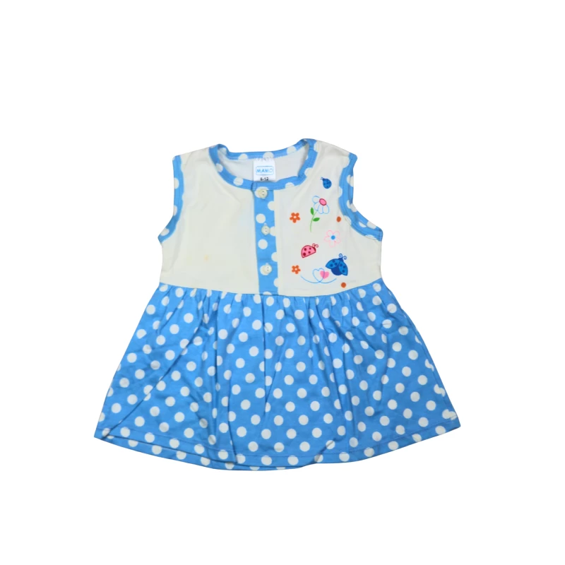 Charming two-piece baby dress set featuring a sleeveless blue dress with white polka dots and a coordinating ivory bodice with colorful flower embroidery. Includes soft elastic bloomers for a comfy, snug fit. Made from breathable, gentle-on-skin fabric perfect for daily wear, dress-up, and special occasions. Suitable for ages 0–24 months. Easy to care for—machine washable.