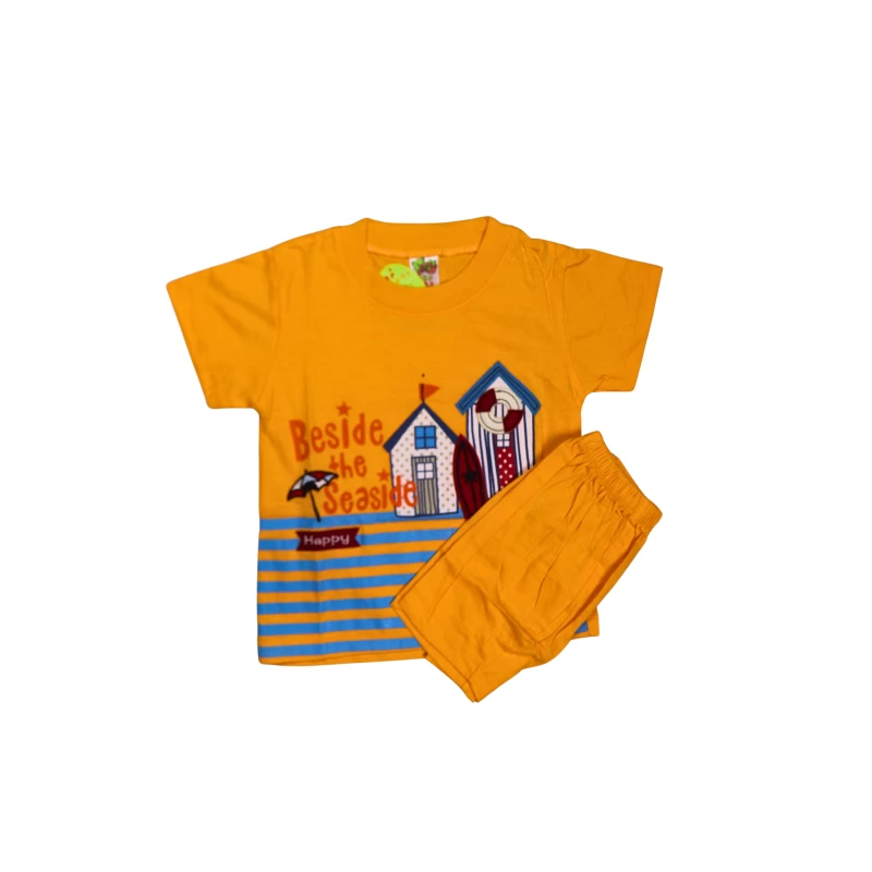 Bring sunshine to playtime with our Bright Orange Beach Vibes Kids T-Shirt & Shorts Set. This cheerful 2-piece outfit features: