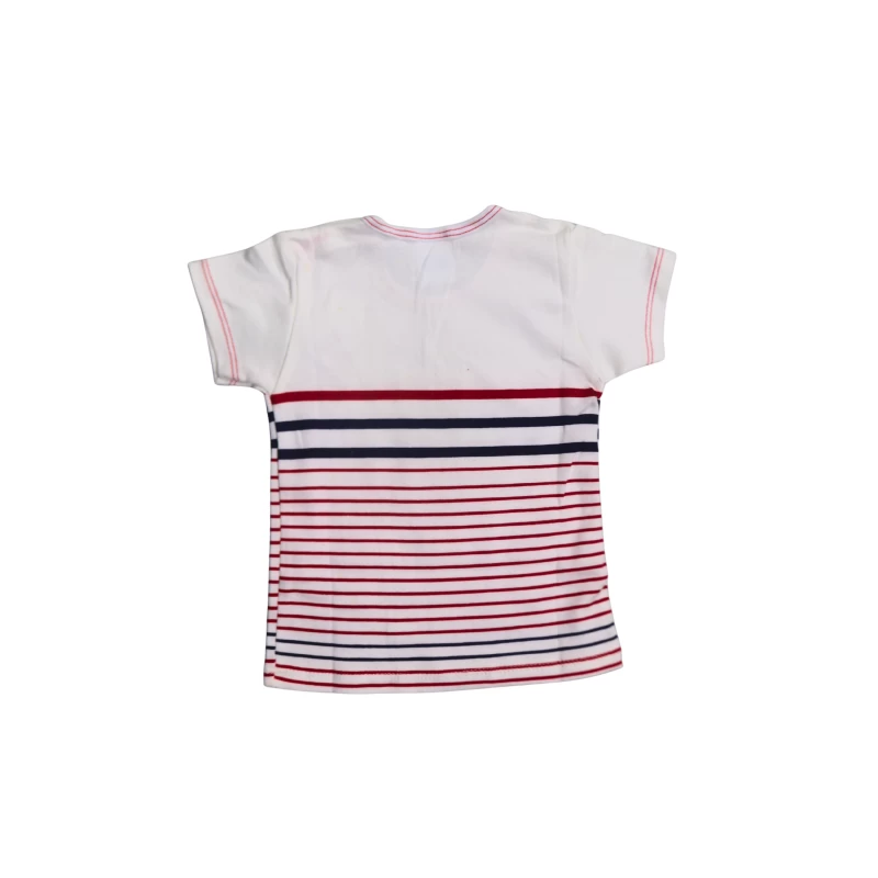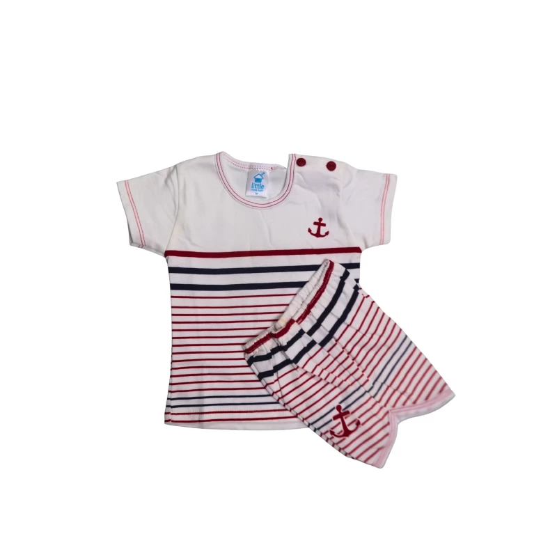 • Classic nautical-inspired two-piece set for active kids. A cream short-sleeve tee with navy and red stripes across the chest, paired with matching striped shorts. Features a small navy anchor emblem for a seaside vibe. Lightweight and breathable, this outfit is perfect for everyday wear, summer outings, and playful adventures. Easy to mix and match with other wardrobe pieces.