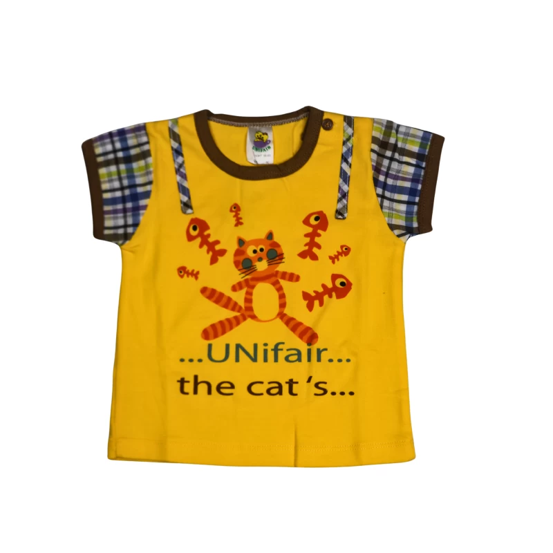 • Fun and comfy two-piece set featuring a bright yellow short-sleeve graphic tee with a playful tiger design and brown trim accents, paired with coordinating brown shorts. Made for active kids, this lightweight outfit is perfect for daily wear, playtime, and casual outings. Easy to mix and match with other wardrobe pieces.