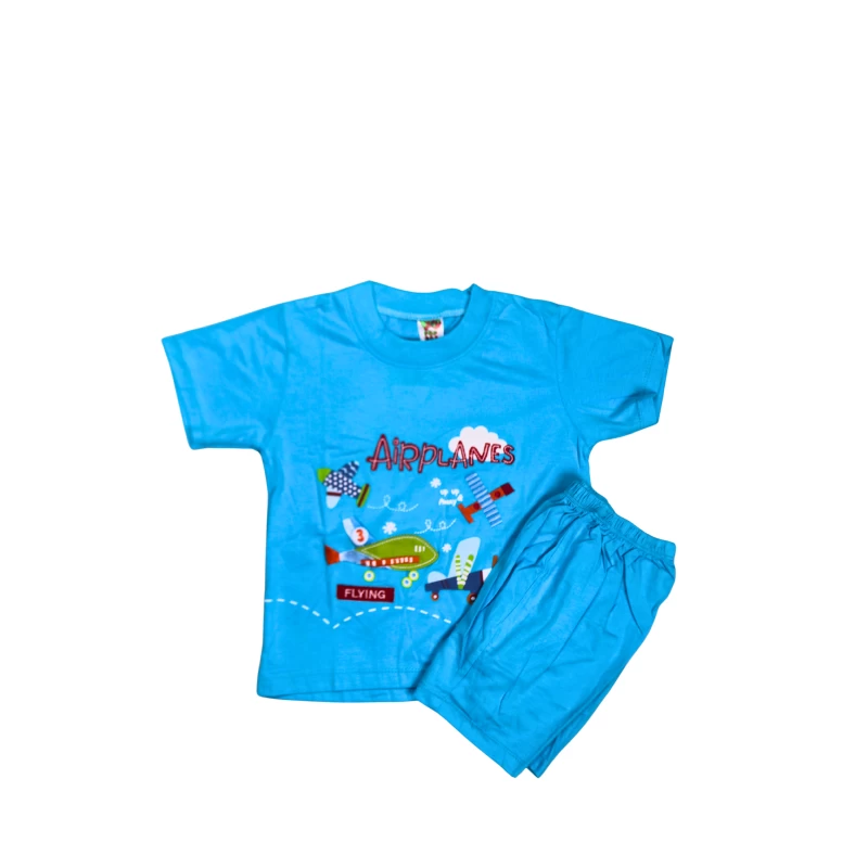 Launch into playtime with our Bright Blue Airplane Adventure Kids T-Shirt & Shorts Set. This cheerful 2-piece outfit features: