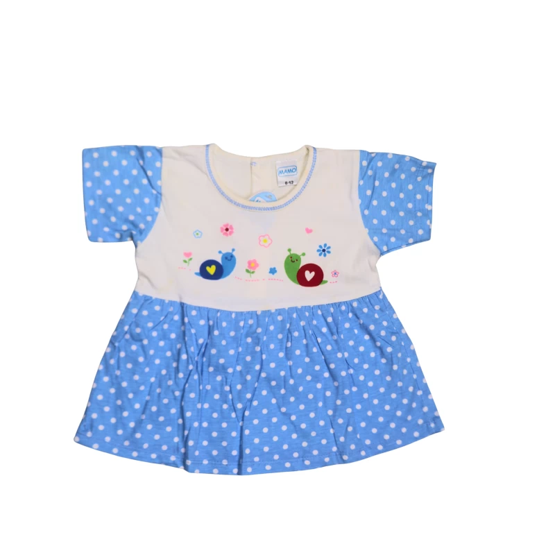 • Design: Bunny and flower graphics on the front; navy polka-dot shorts
