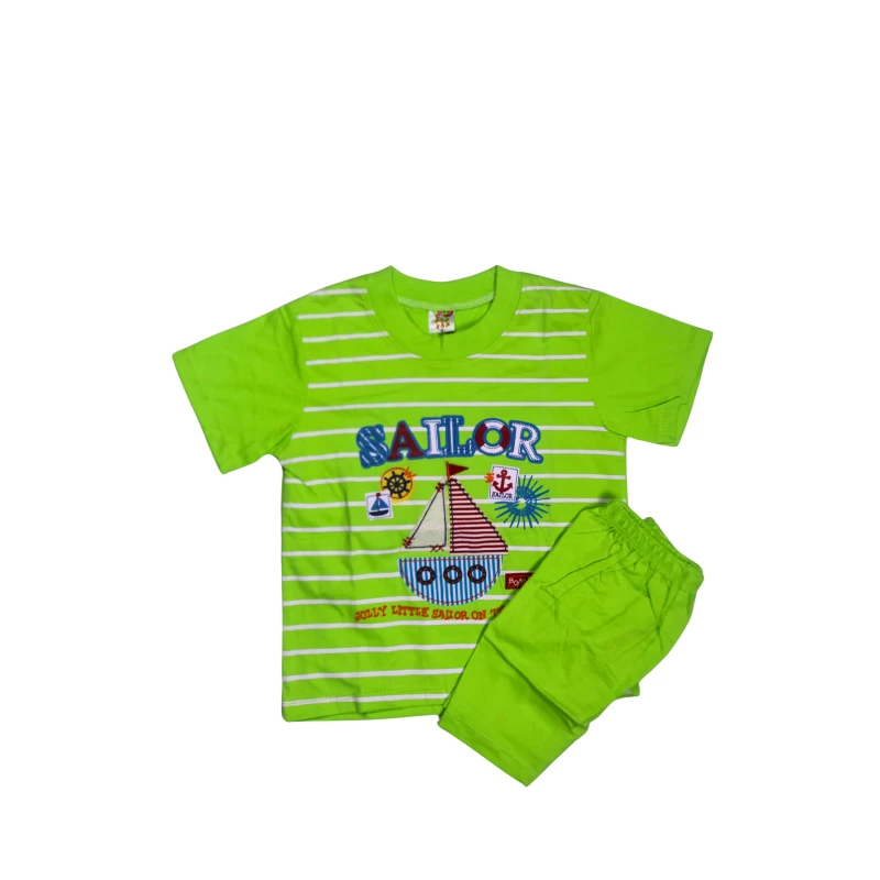 Brighten playtime with this vibrant blue two-piece set: a short-sleeve graphic tee featuring a sailor-themed sailboat and nautical accents, paired with matching shorts. Designed for active kids, the soft, breathable fabric keeps little ones comfortable during sunny days and energetic adventures. The nautical print adds a fun, adventurous vibe that kids love for everyday wear, outings, and back-to-school outfits. The shorts come with an elastic waistband for a secure, easy fit that grows with your child. Durable stitching ensures the set stands up to regular washing.