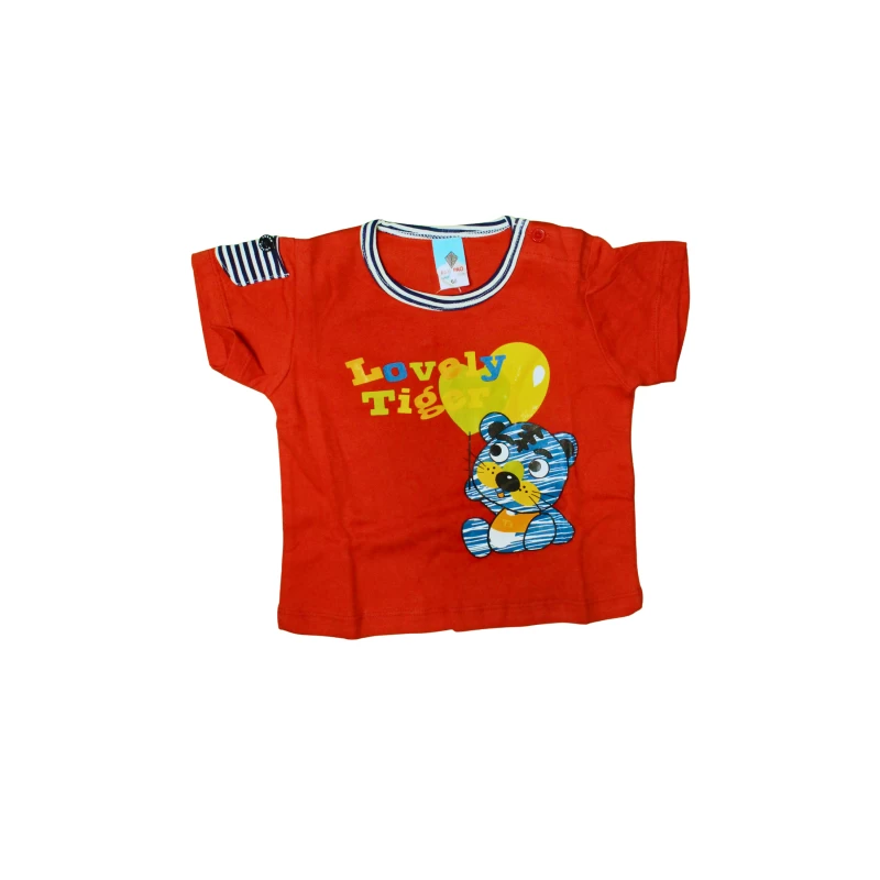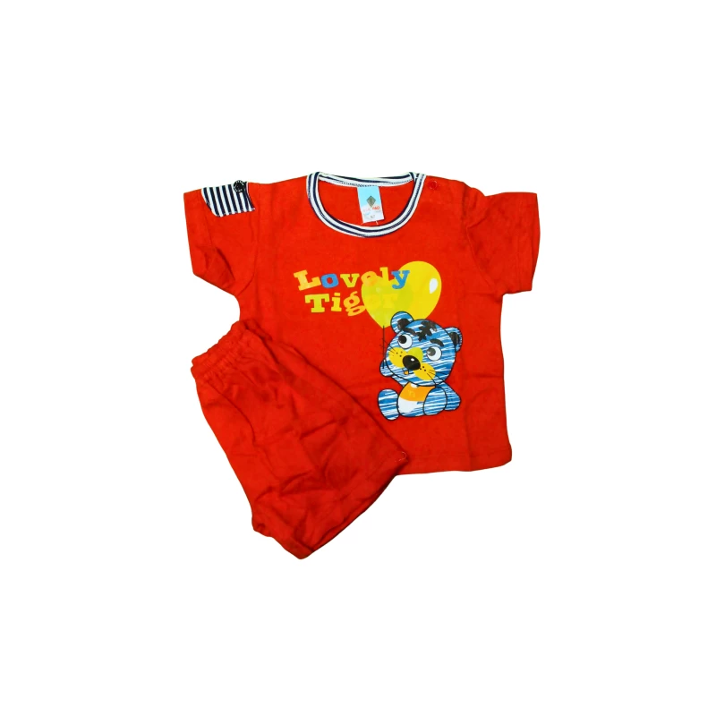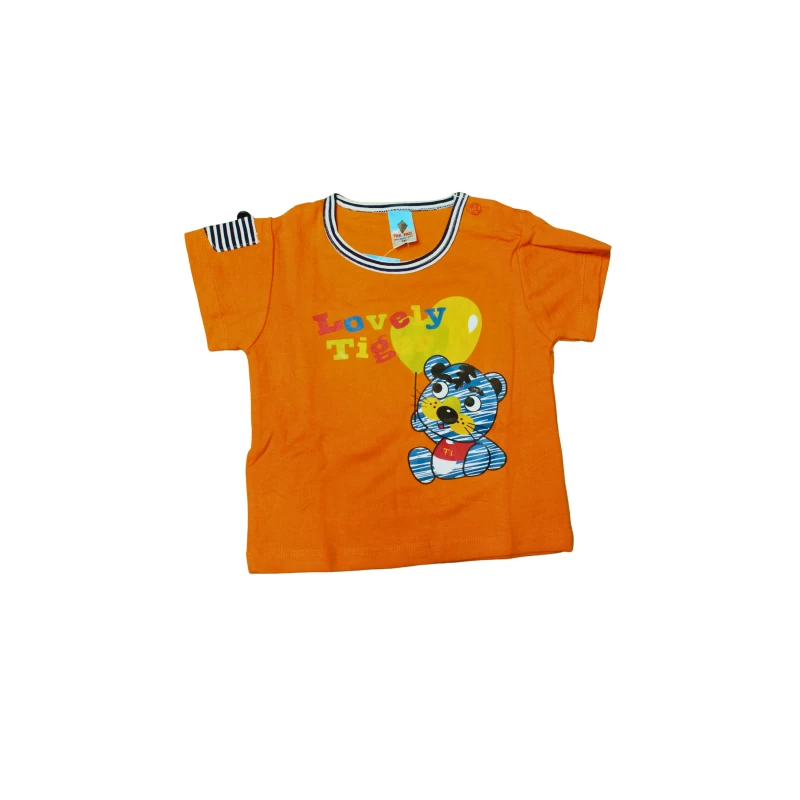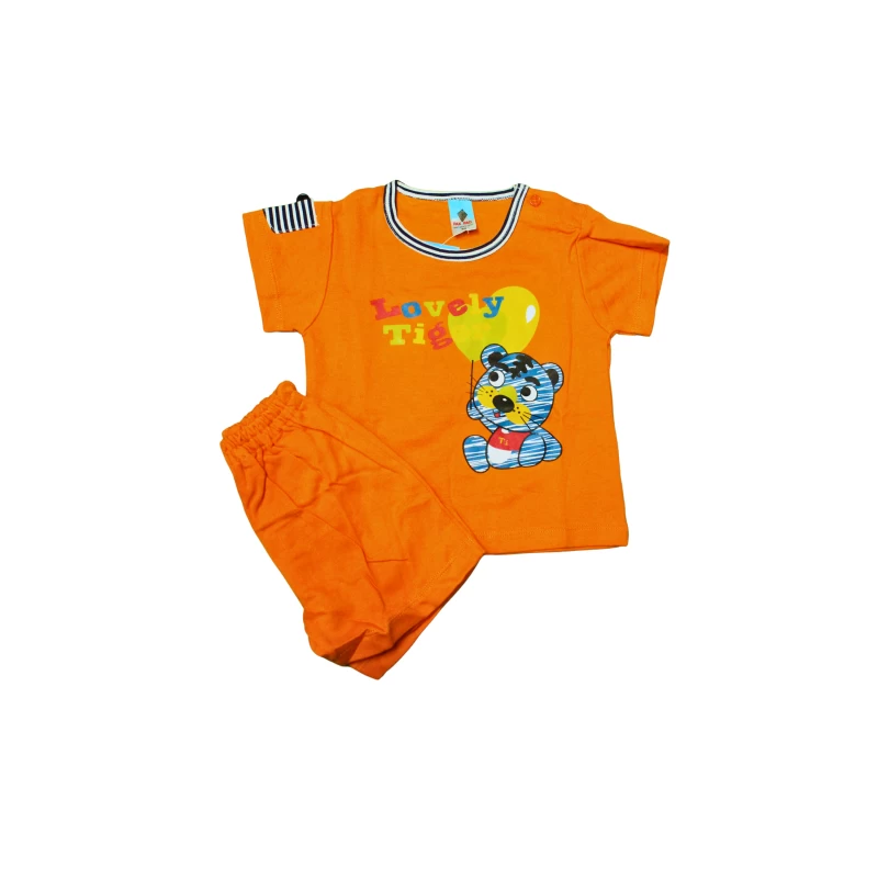 • Bright, comfy two-piece outfit for kids. The short-sleeve orange tee features a playful bear graphic with a colorful “Lovely Tiger” print and a striped collar detail for a fun, sporty look. Paired with matching orange shorts with an elastic waistband for easy dressing and all-day comfort.