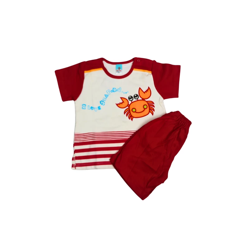 Kids Summer Beach Theme T-Shirt and Shorts Set with Crab Print