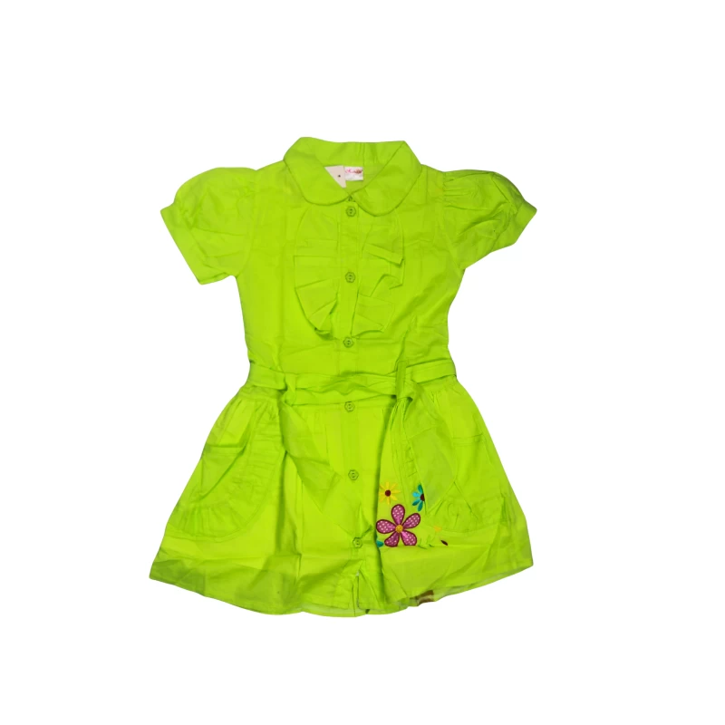Delightfully girly and comfortable, this Pink Embroidered Floral Dress is perfect for sunny days, parties, and family gatherings. The dress features puff short sleeves, a classic polo-style collar with a ruffle front, a matching fabric belt to cinch the waist, and colorful embroidered flowers on the skirt for a playful splash of color.