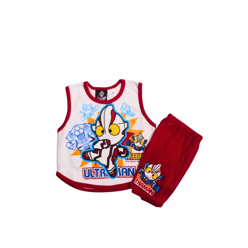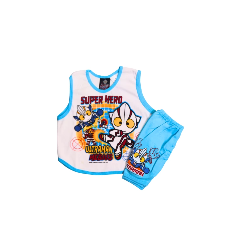 Bright, action-packed kids set featuring Ultraman Mebius in a bold superhero graphic. Includes a sleeveless tank top with blue trim and matching blue shorts with a cool Ultraman print. Made from soft, breathable fabric for playtime, sports, and lounging. Suitable for boys and girls aged 0.6–3. Easy to care for—machine washable.