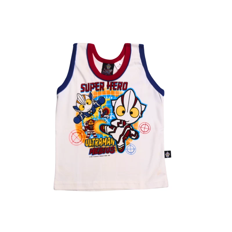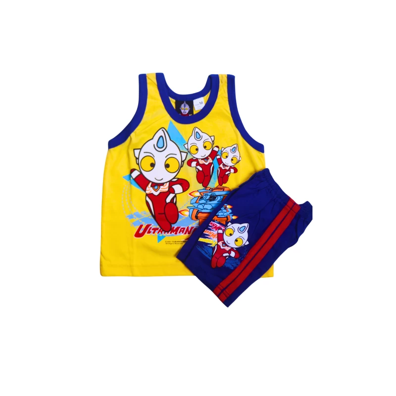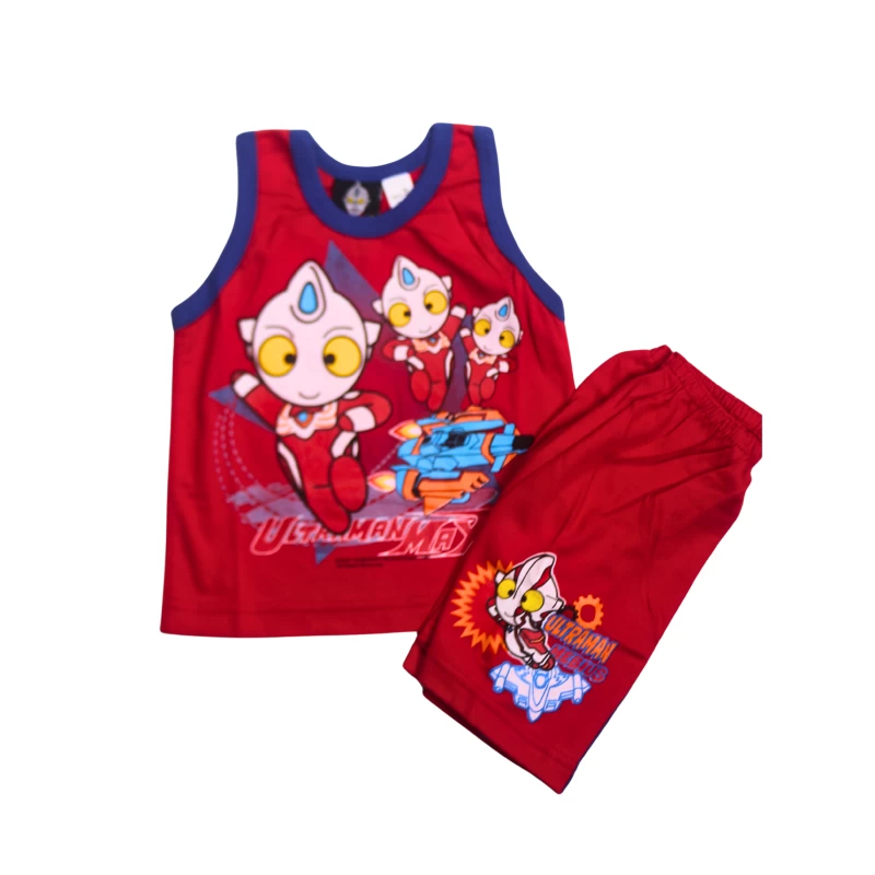 Gear up for an action-packed day with the Ultraman Max Kids Sleeveless Tank Top & Shorts Set. This vibrant two-piece outfit features a bold Ultraman Max graphic on a white sleeveless tank with blue trim and matching blue shorts. Perfect for active kids who love superheroes and bright, playful designs.